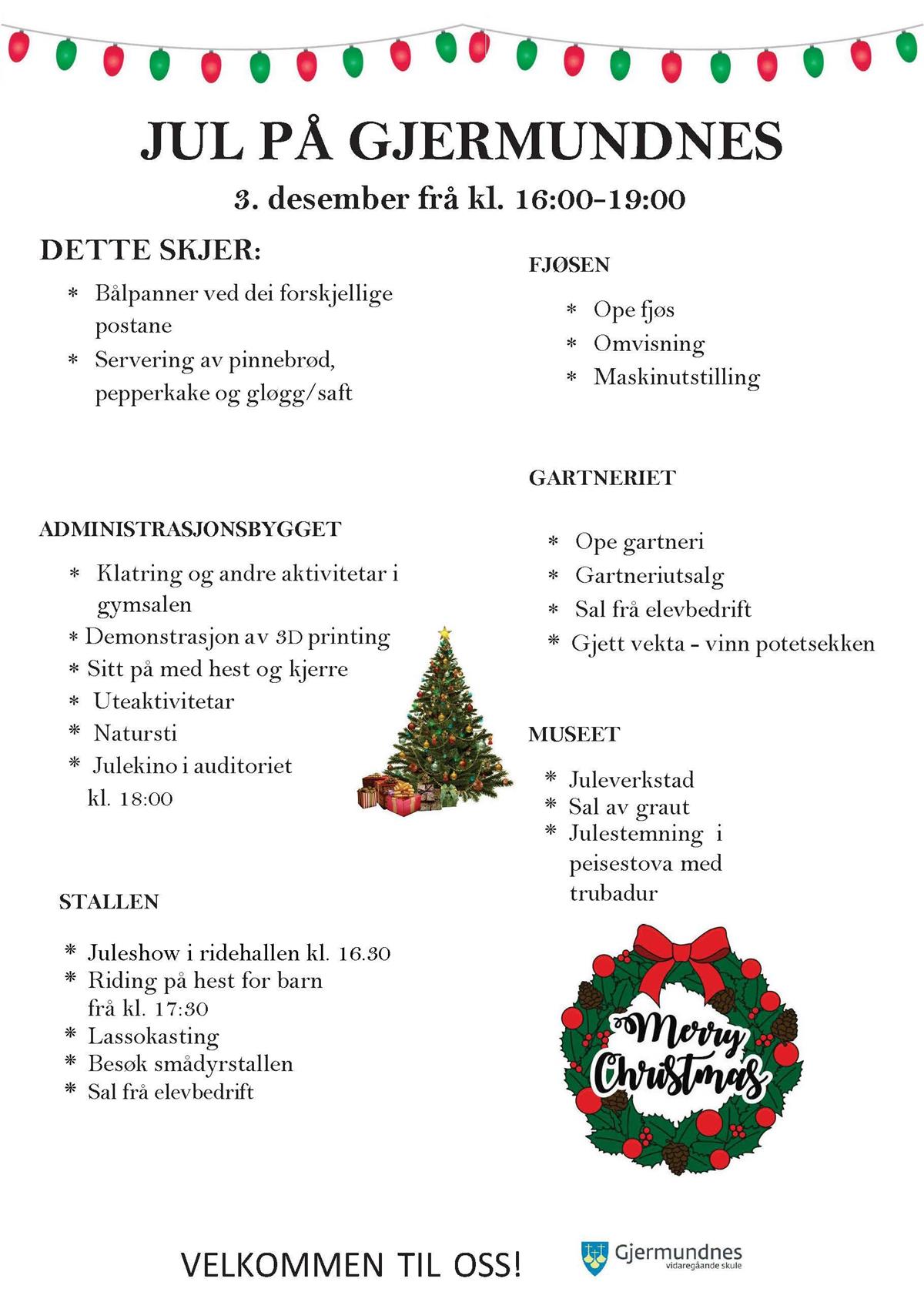 Kom og oppleve julestemninga som elevar og ansatte ved Gjermundnes vgs har laga til.
